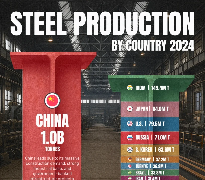 بزرگترین تولیدکنندگان فولاد جهان در 2024 ۱۰ کشوری که بزرگترین تولیدکنندگان فولاد در جهان در سال ۲۰۲۴ بودهاند + اینفوگرافی نکات کلیدی: فولاد ستون فقرات زیرساختهای مدرن است و در همه چیز از آسمانخراشها و پلها تا خودروها و لوازم خانگی کاربرد دارد. این اینفوگرافی، کشورهای برتر تولیدکننده فولاد در جهان را بر اساس تولید […]